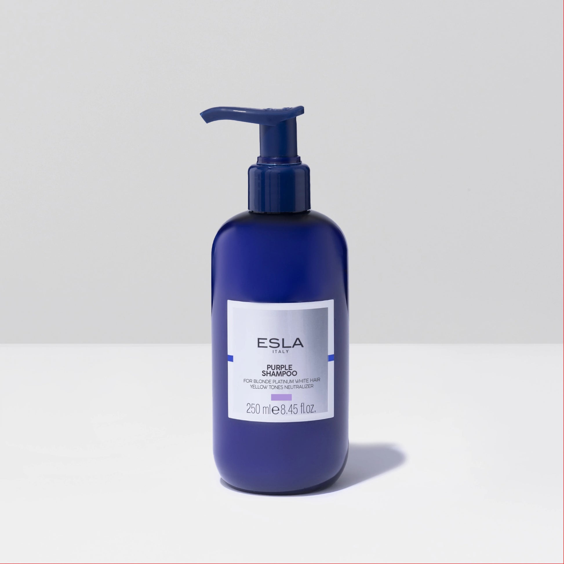 Purple shampoo with fruit acids and blueberry extract, it counteracts unwanted yellow or brassy tones from lightening and bleaching, leaving hair radiant and supple.