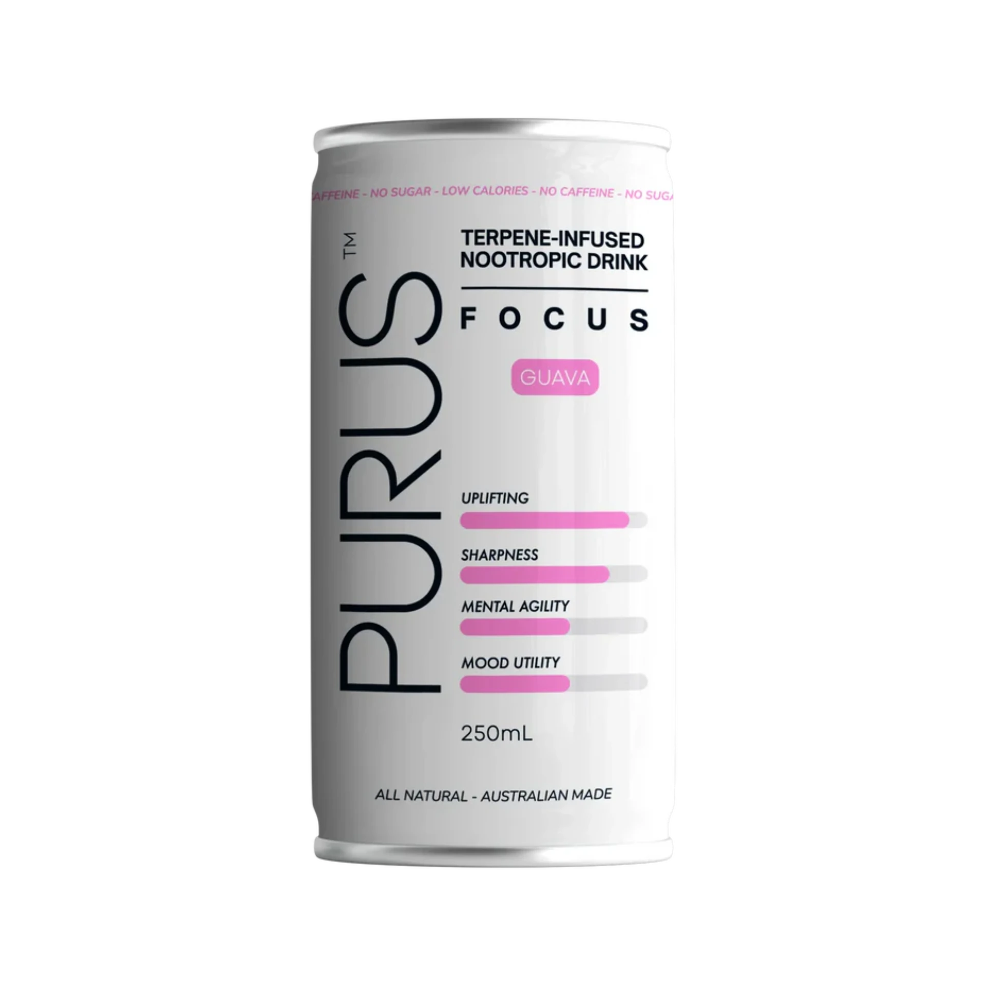 Terpene Infused Nootropic Drink. Natural terpene extracts selected to aid mental focus for function, added with a hint of pink Guava for flavour. Allergen Free, Sugar Free and Low Calorie. Available in 8,12,16 & 24pk's